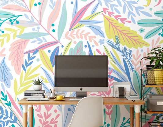 Origin Murals Patterned Leaves Pastel 300cm X 240cm