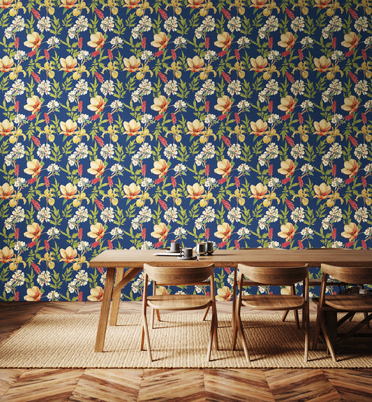 Origin Murals Flowing Flowers Teal Blue Coral 350cm X 280cm