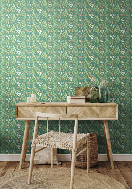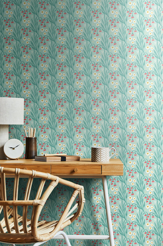 Hoopla Walls Meadow Stripe Seafoam Coral