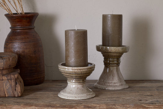 Nkuku Cabra Reactive Glaze Candle Holder Olive & Natural