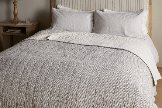Nkuku Dipti Cotton & Linen Block Print Bed Quilt Charcoal