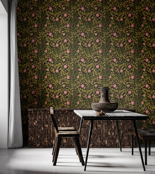 Origin Murals Jacobean Rose Trail Navy Blue 350cm X 280cm