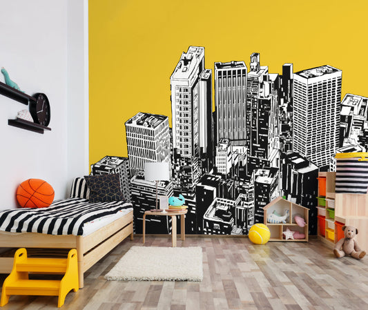 Origin Murals Urban City Skyscrapers Yellow Gold 350cm X 280cm