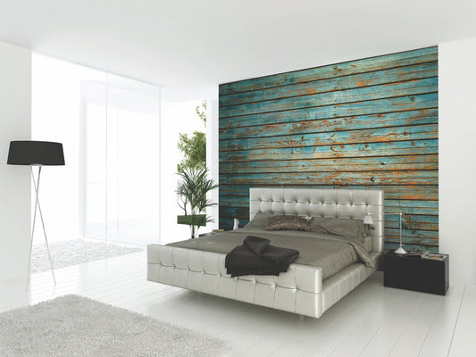 Origin Murals Rustic Wood Effect Blue 350cm X 280cm