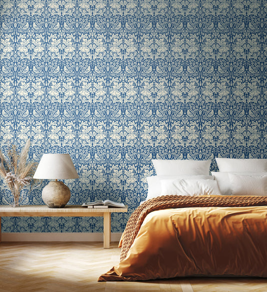 Origin Murals Rose Toile Teal Blue 300cm X 240cm