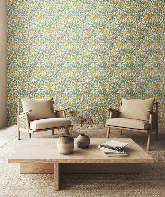 Hoopla Walls Honeysuckle Leaf Trail Seafoam