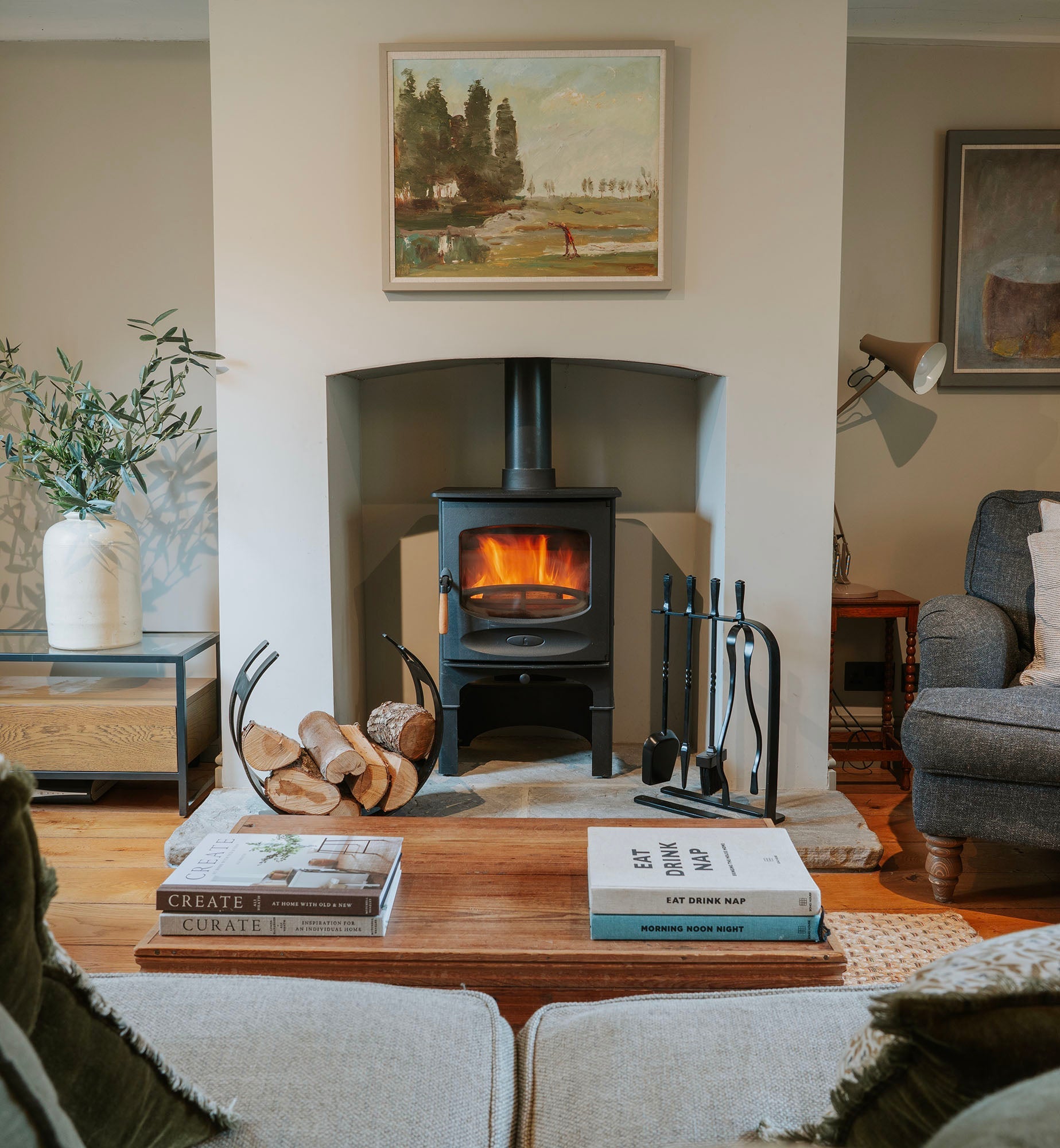- Completes any fireside ensemble as a central feature