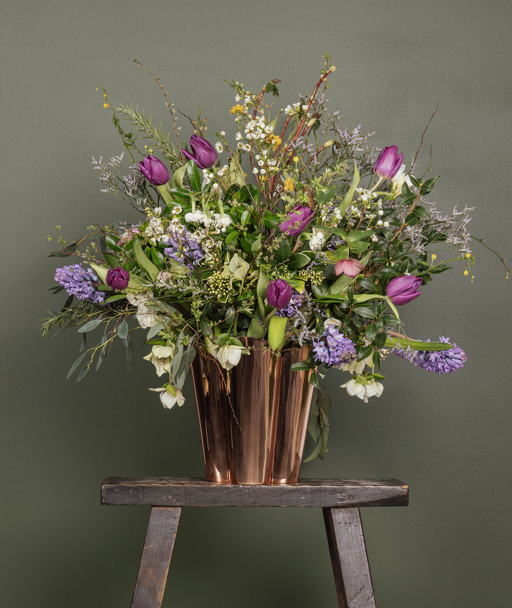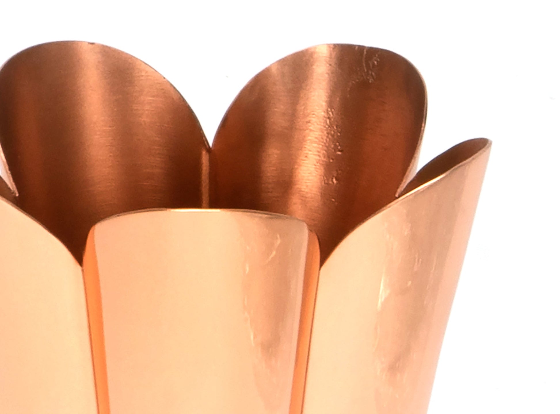 In the elegant image, the From The Anvil Flora Pot glows with a brilliant, mirror-like sheen, reflecting its surroundings and enhancing the natural vibrancy of any plant it houses. The pot’s graceful curved peaks, inspired by the delicate petals of a blossoming flower, create a sense of organic movement and timeless beauty, inviting a touch of sophistication wherever it is displayed.