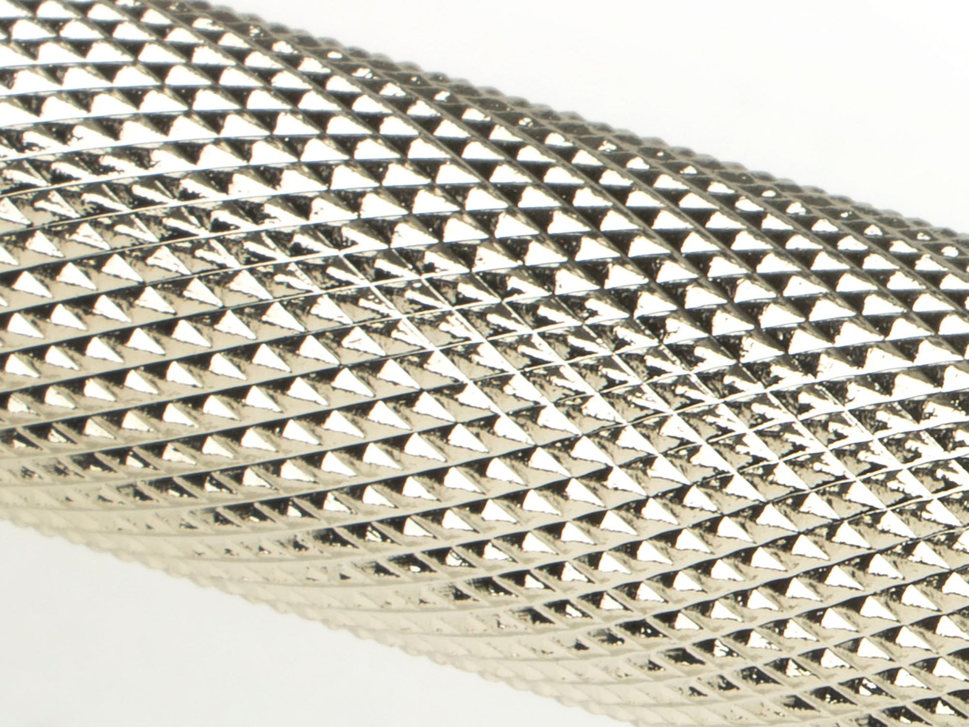 - Features an eye-catching diamond-effect knurled texture for a truly unique finish