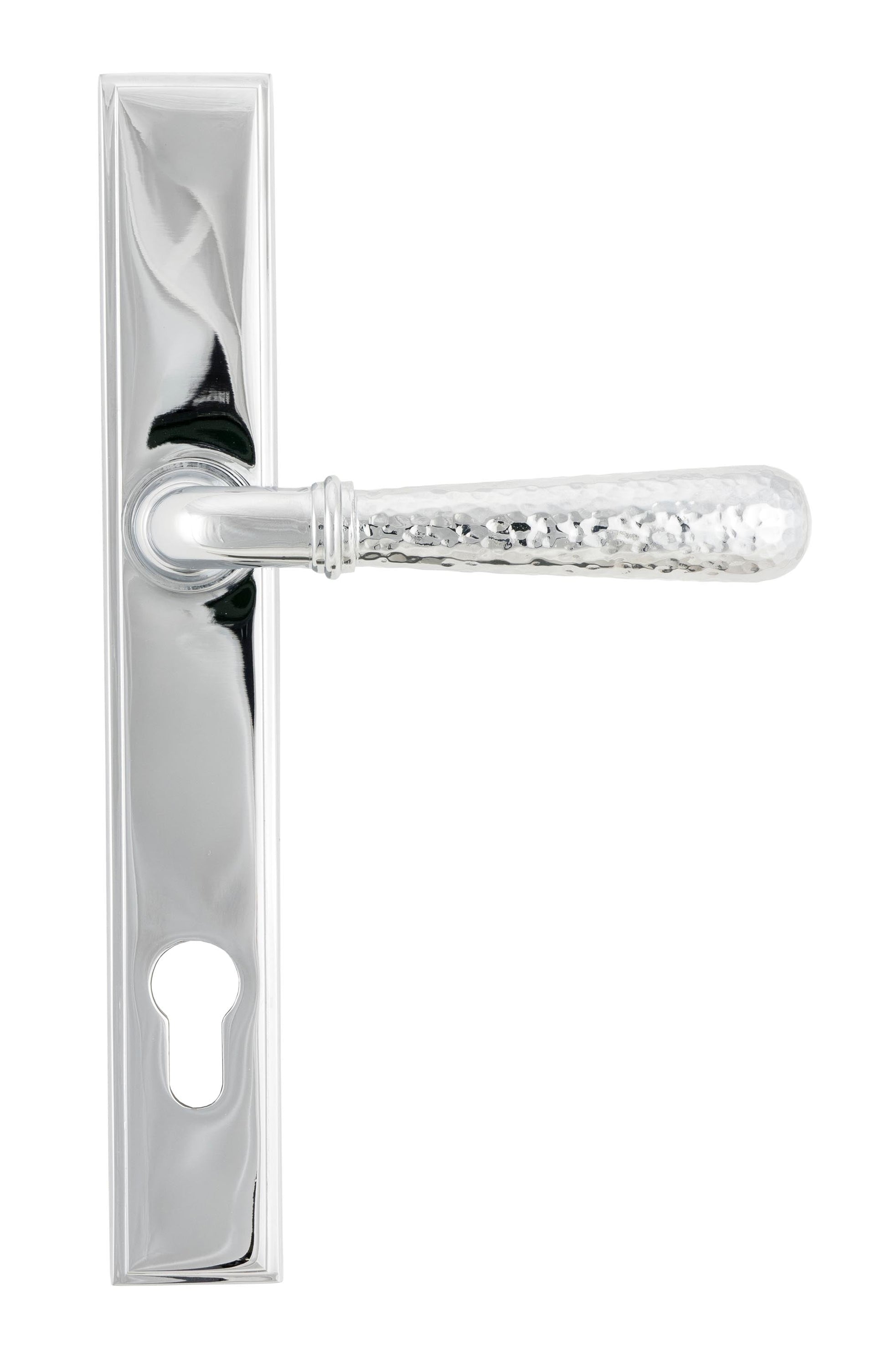 This Hammered Newbury collection makes a striking design statement, with matching products available to complete your property’s aesthetic. Choose the From The Anvil Hammered Newbury Slimline Espag. Lock Set for an inspired fusion of visual charm, security, and enduring quality in every detail.