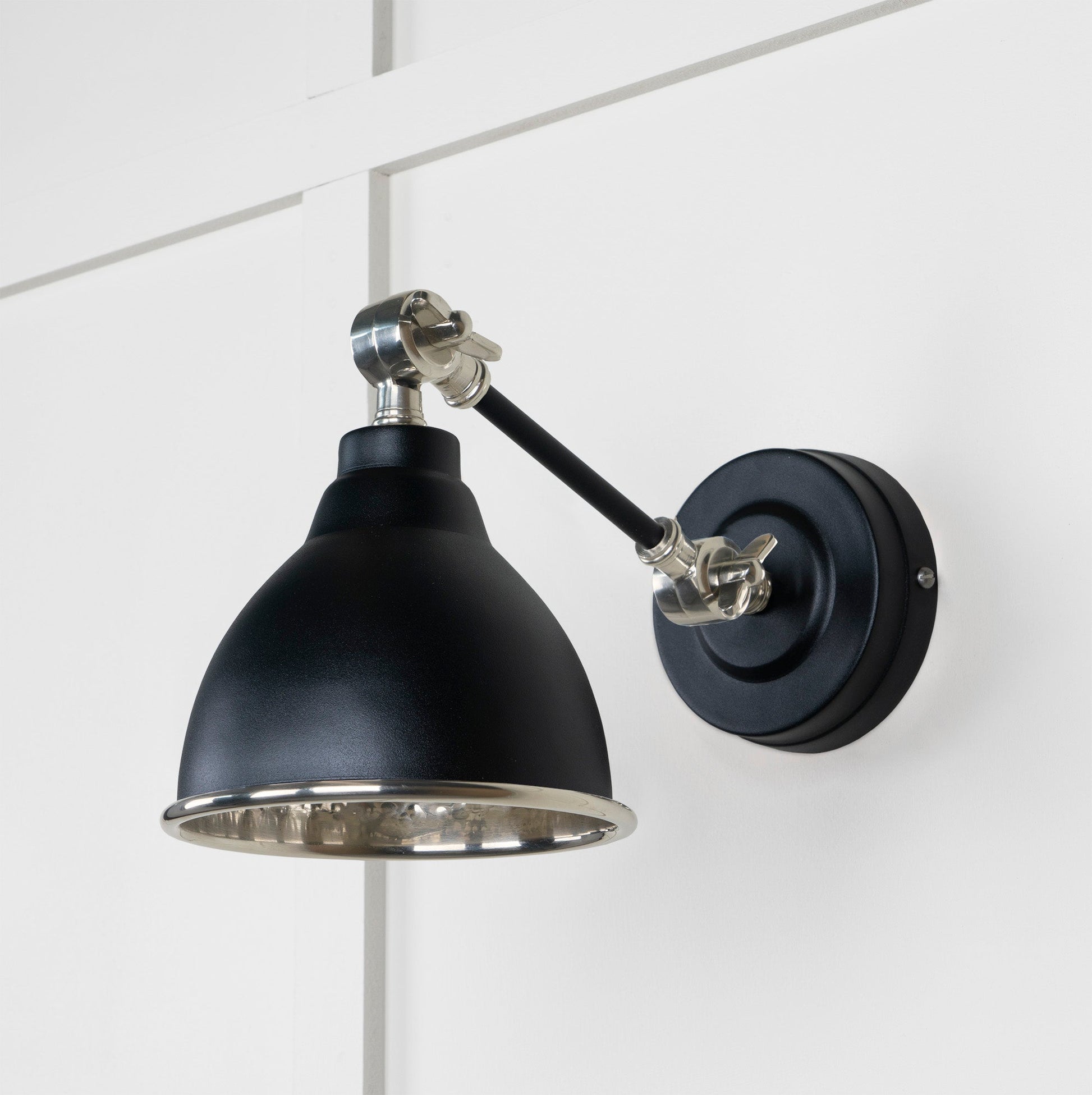 Enhance your living space with the From The Anvil Hammered Nickel Brindley Wall Light—where distinguished British design meets practical versatility. Ideal for hallways, living rooms, or bedrooms, this wall light delivers both visual appeal and dependable illumination, embodying the very best of contemporary and classic lighting.