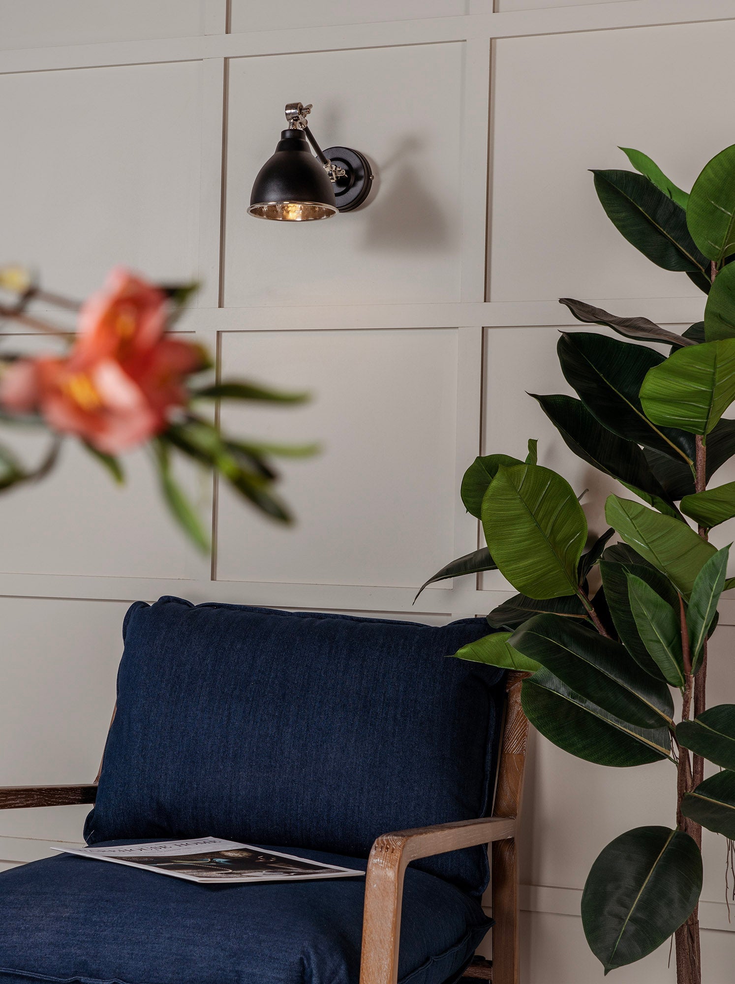 The From The Anvil Hammered Nickel Brindley Wall Light stands out both as a practical light fixture and as a designer detail for your home. Thanks to its distinctive hammered surface and versatile finish, this wall light can be used alone for a statement touch or paired with matching pendants for a cohesive lighting theme, enhancing both modern and traditional décors. This wall light is part of a wider collection, offering multiple colours and finishes to suit your personal tastes, while also being eligible for a bespoke colour service.