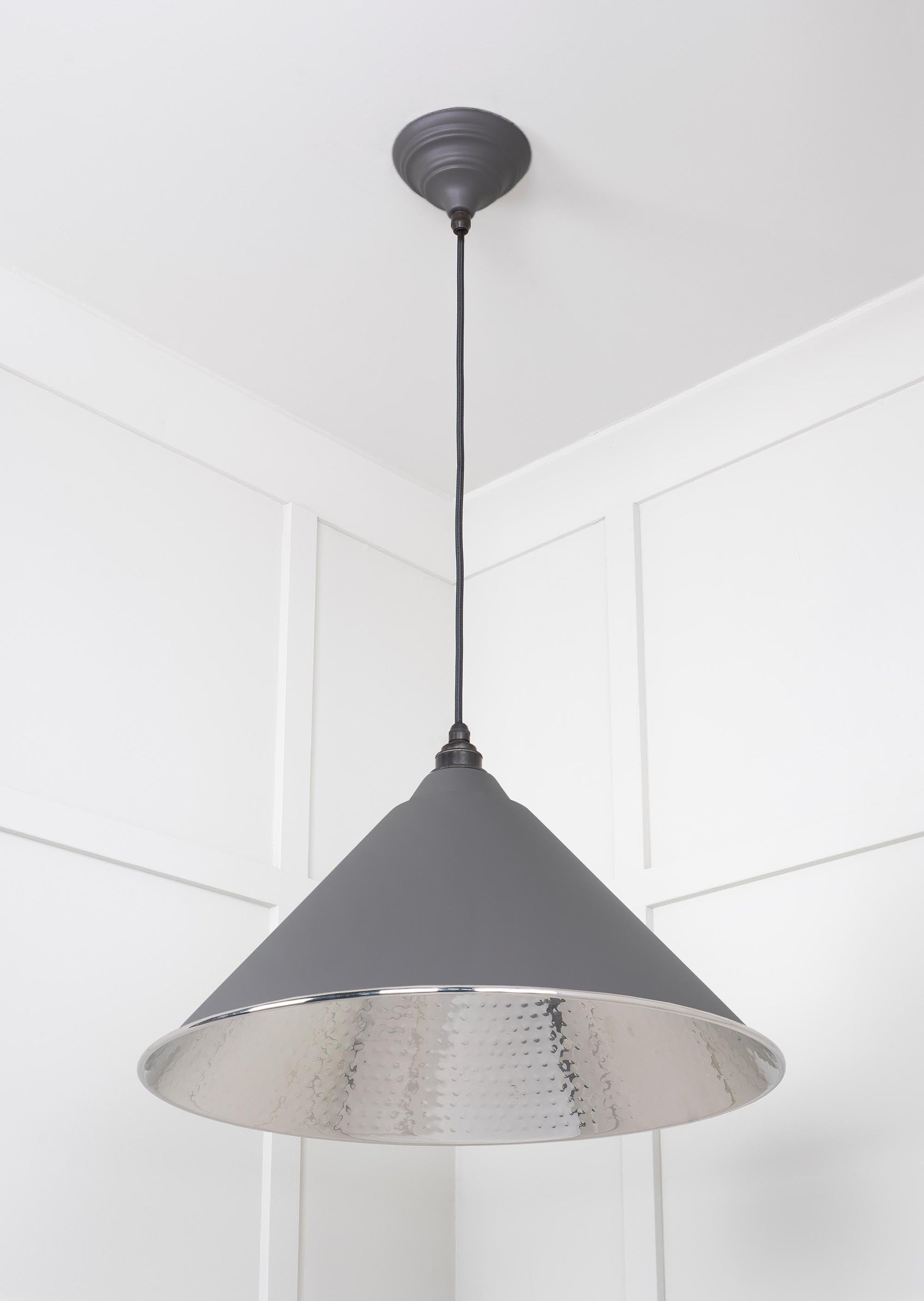 The From The Anvil Hammered Nickel Hockley Pendant is a statement piece from a renowned brand celebrated for its designer flair and exceptional quality. Instantly elevating interior spaces, this pendant encapsulates luxury and sophistication, making it an excellent choice for those wishing to add a touch of drama to their home or commercial environment.