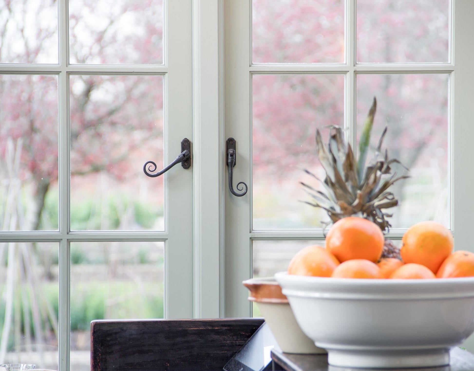 This espagnolette fastener exudes timeless appeal, characterised by its elegantly curved handle with a distinctive curled end. The traditional monkeytail profile adds a sense of vintage character, while its gently arched silhouette offers an aesthetic focal point when fitted to any window. The image suggests a robust, meticulously finished handle that sits gracefully against the frame, reflecting the care and attention typical of From The Anvil’s work.