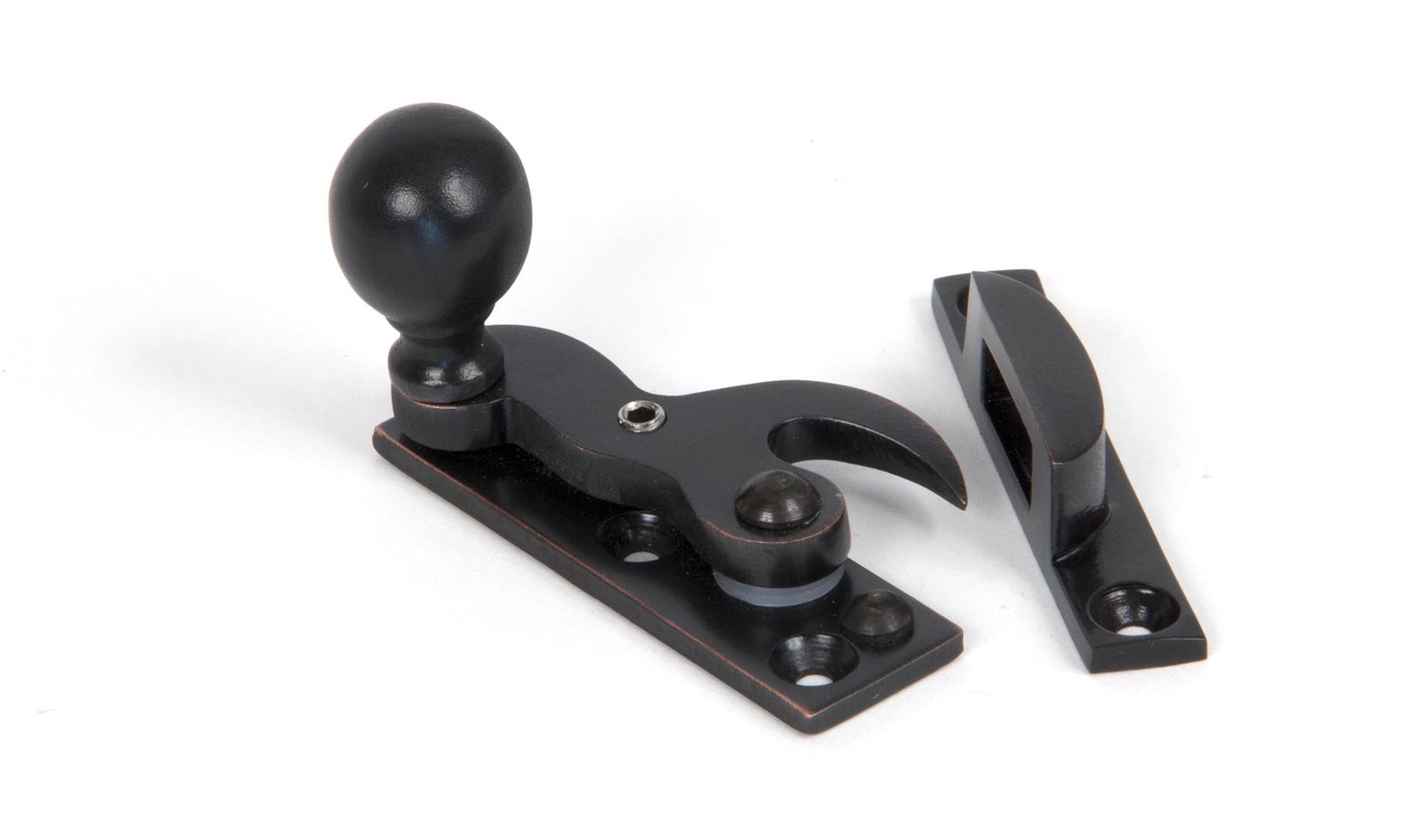The image features a sleek, classic sash hook fastener, exuding understated elegance. Its strong, minimalist lines and deep, rich finish showcase time-honoured craftsmanship, blending seamlessly with period interiors whilst offering a stylish accent for any window setting. The functional, yet refined, arrangement suggests both security and style, perfectly suiting contemporary and classic décors alike.