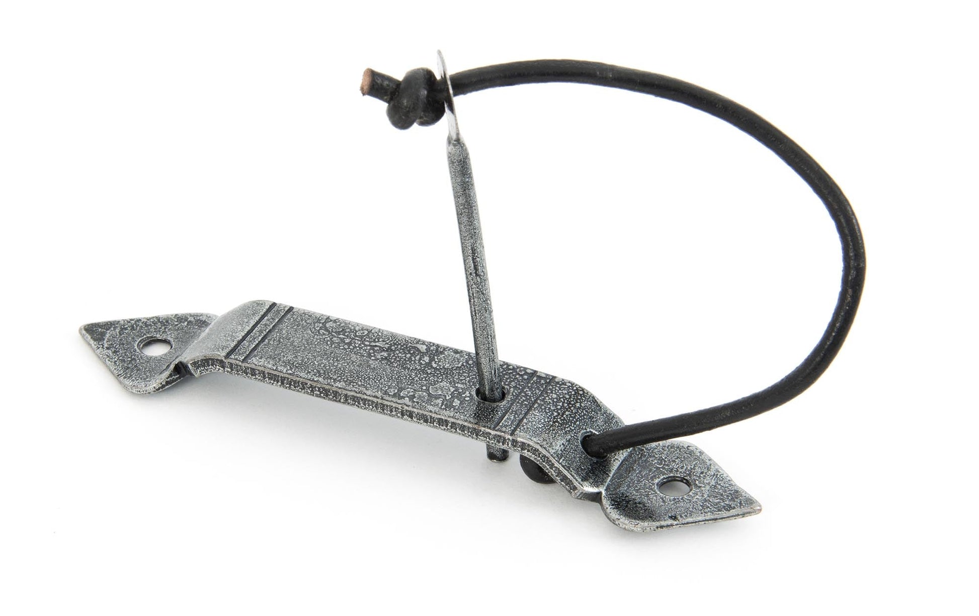 The image reveals a robust, elegantly shaped staple, expertly finished to complement a range of thumblatch sets. Its clean lines and classic silhouette are accentuated by fine detailing, showcasing the superior workmanship synonymous with From The Anvil hardware. The quality finish ensures it effortlessly blends in with doors and furnishings, adding a touch of refinement to any home accessory arrangement.