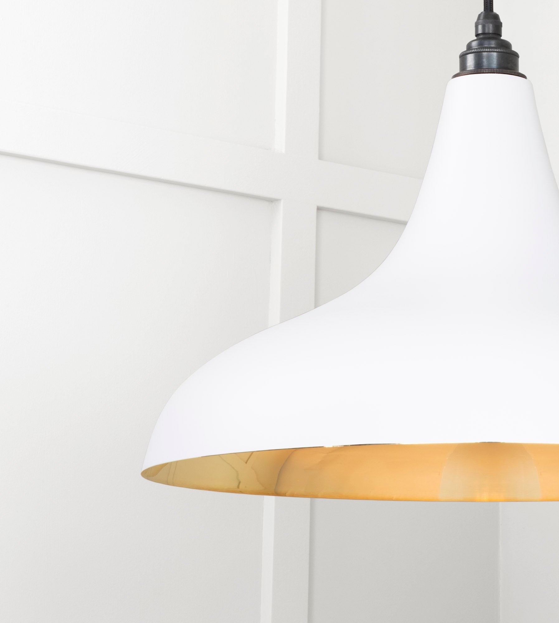 The From The Anvil Smooth Brass Frankley Pendant is a ceiling pendant fashioned with meticulous attention to detail and modern elegance. According to its product description and metafields, this pendant embodies versatility and eye-catching appeal, whether showcased individually or grouped for dramatic effect. Every Frankley pendant is made to order, ensuring a unique, tailored lighting feature for your home or workspace.