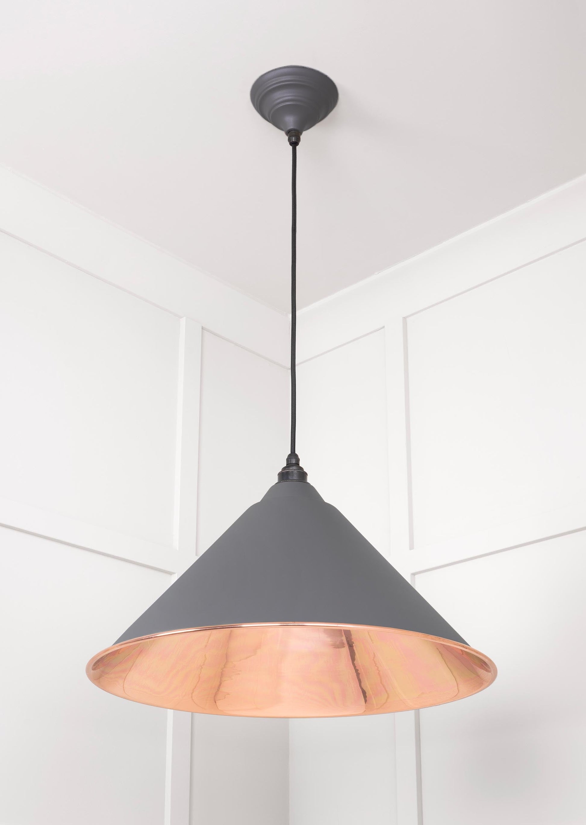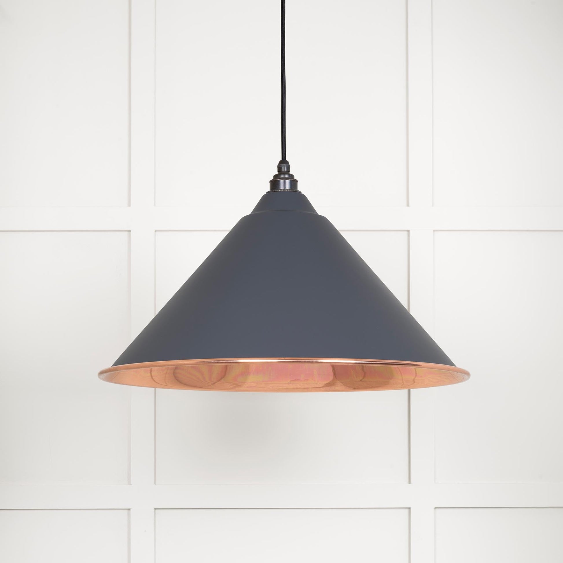 The From The Anvil Smooth Copper Hockley Pendant is a statement ceiling pendant, designed to bring sophisticated drama to both contemporary and traditional homes. According to the brand’s signature style, this handcrafted piece is made to order, promising unique attention to each item before careful delivery to your door. The pendant’s versatile aesthetic and bespoke colour options offer endless possibilities for tailored interior design.