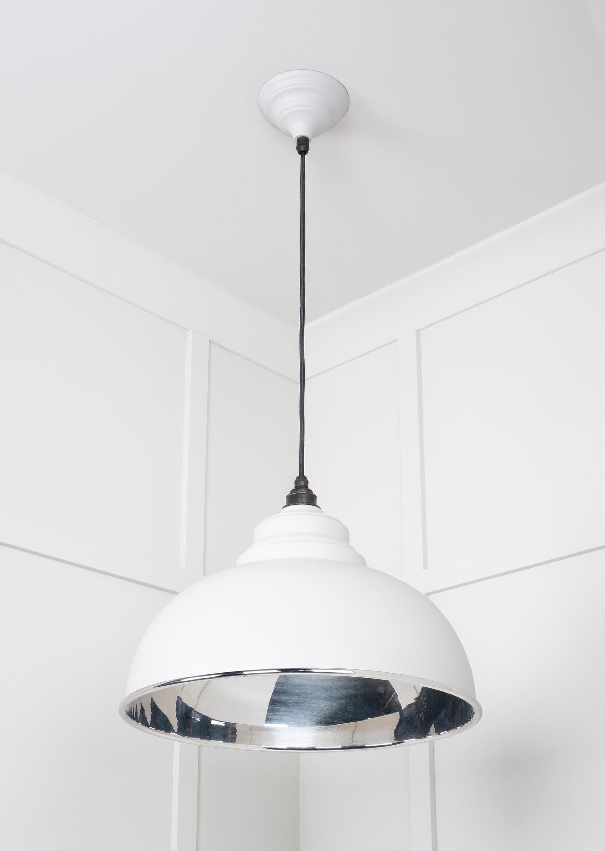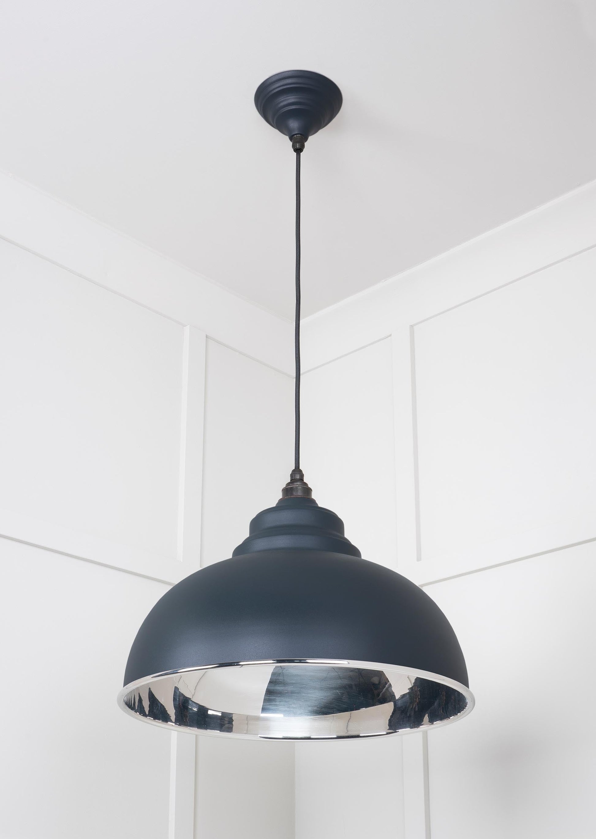 The Smooth Nickel Harborne Pendant from From The Anvil captures attention immediately with its elegant, rounded profile and understated, timeless finish. The image showcases a beautifully smooth pendant whose subtle curves and classic British design evoke a sense of effortless refinement, making it a stunning centrepiece in any room. Suspended neatly from a black fabric cable, the pendant exudes charm and grace while seamlessly complementing both modern and traditional interiors.
