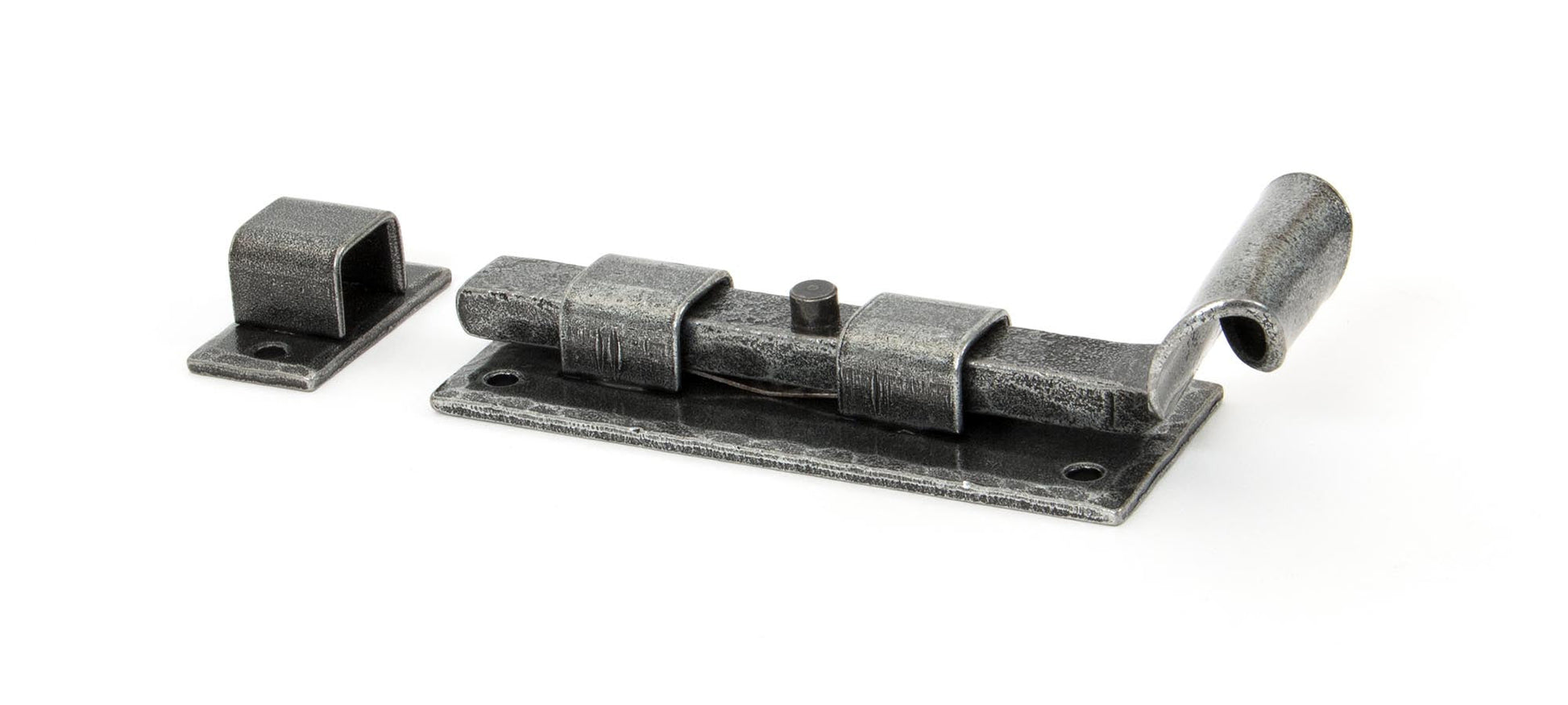 The image captures a classic straight door bolt with a distinctly traditional flair. The elegant hand-forged fishtail end adds an artisanal touch, while the bold lines and authentic finishing embody a sense of heritage. Its sophisticated sheen and streamlined profile make it an eye-catching yet understated staple for any interior or period property, seamlessly complementing both modern and classical decor.
