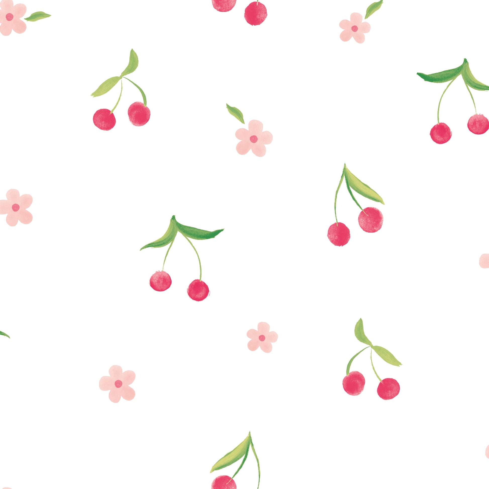 The Hoopla Walls Cheery Cherries Rouge Ice Wallpaper from Hoopla Walls embodies a perfect blend of charm and versatility. Cheerful cherries paired with petite florals are tastefully scattered against an understated ground, enhancing the clean and tranquil vibe of any room. Thanks to the watercolour technique, this wallpaper brings textural character and understated allure to living spaces.
