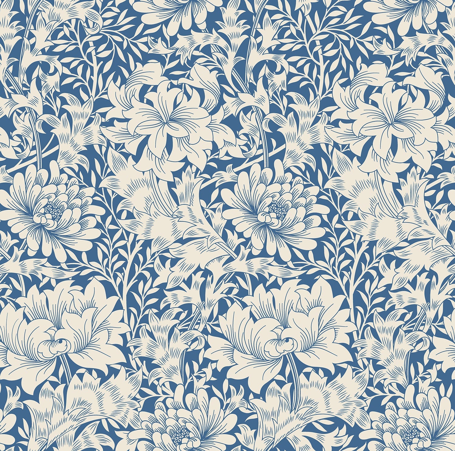 The Hoopla Walls Chrysanthemum Indigo Blue wallpaper by Hoopla Walls combines timeless floral charm with a modern colour palette, making it ideal for those wishing to refresh a lounge, kitchen, or bedroom. Thanks to its versatile design, it can be styled for both period homes and contemporary spaces, blending seamlessly with a range of furnishings and accessories.