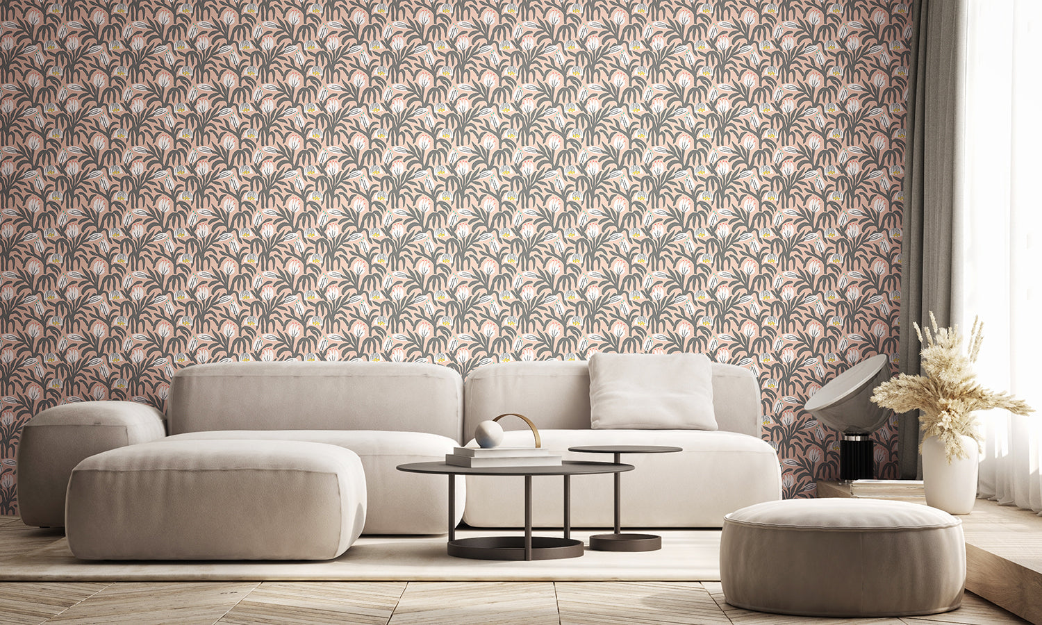 The Hoopla Walls Chunky Flower Powder Puff wallpaper is designed to make a statement in spaces where a touch of whimsy is desired. The harmonious blends of hues and bold floral imagery embody a cheerful spirit, making it ideal for a child’s bedroom, lounge, or even a cosy nook in a modern home. The artwork’s abstract quality lends itself to interiors seeking a fresh, graphic take on botanical themes, firmly positioning this wallpaper as a standout piece in any décor.
