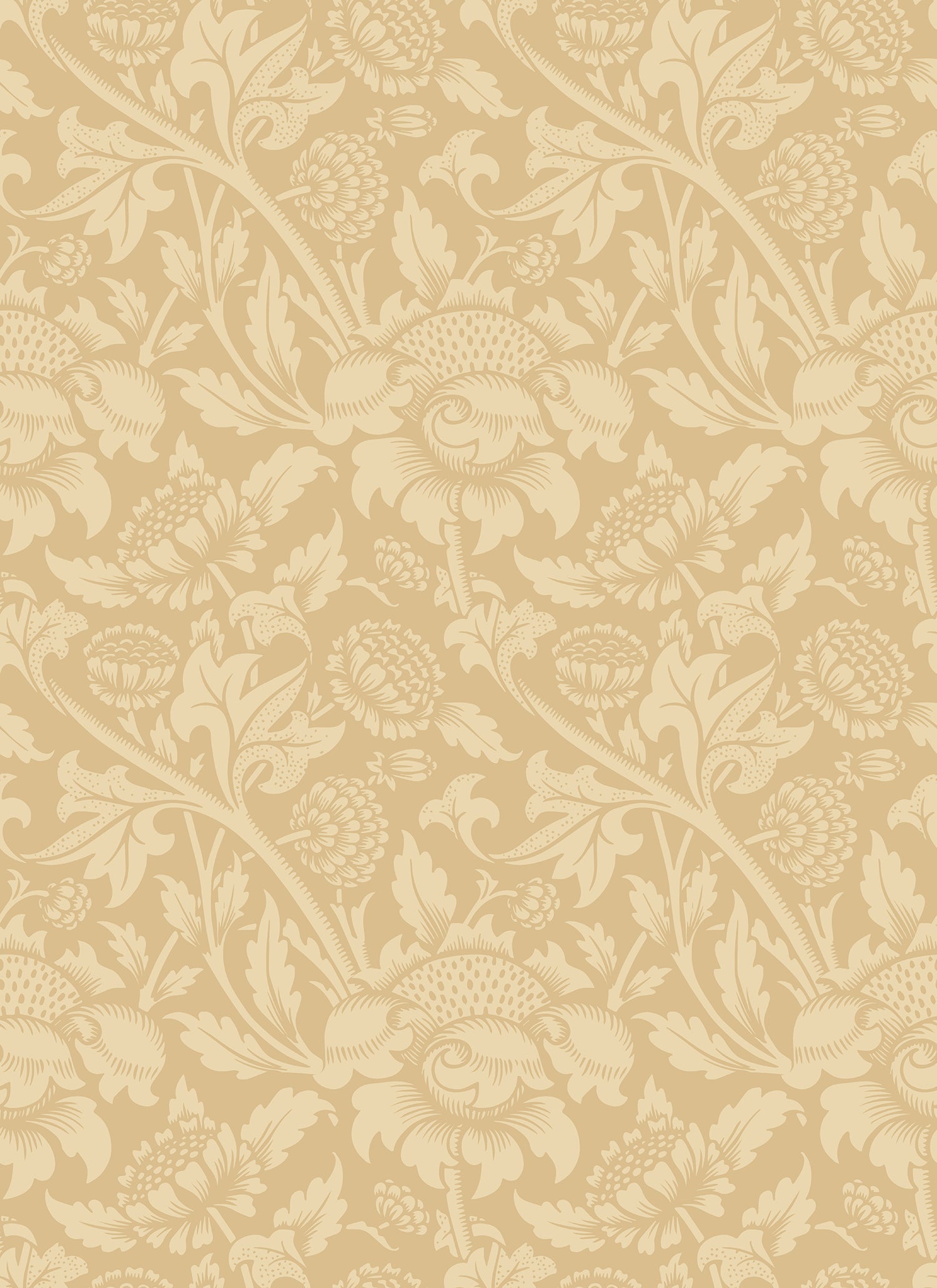 The image showcases a luxurious pattern with generously sized, sunflower-inspired blooms, interwoven with lavish, sweeping vines. The interplay of golden tones with intricate botanical motifs evokes the beauty of Victorian-era craftsmanship, adding a rich and inviting atmosphere to any interior. Set against a backdrop of warmth and light, the design feels both opulent and organic, making a statement in any room.