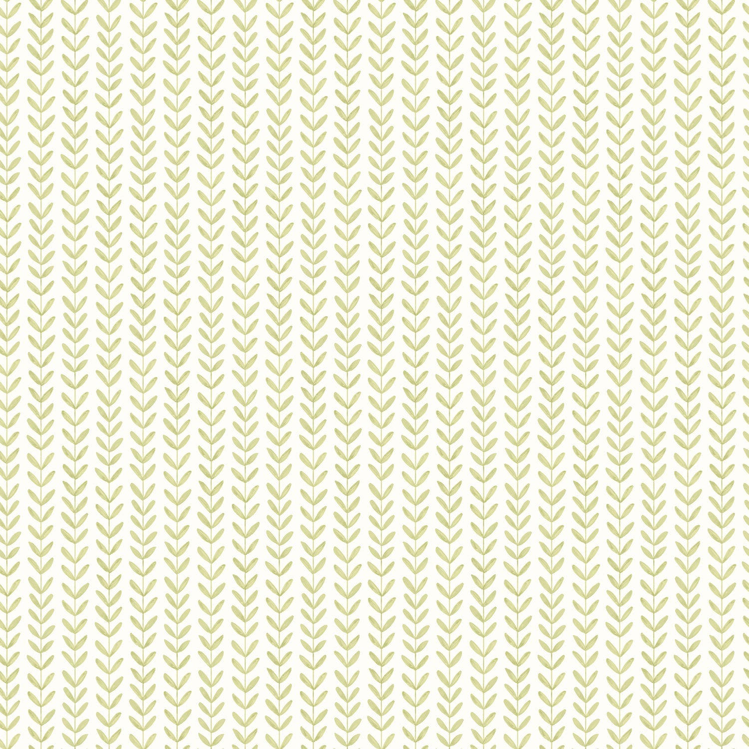 The image reveals a soothing green backdrop, enhanced by a harmonious arrangement of petite leaf motifs. These delicate leaves, meandering in soft stripes, evoke a sense of simple sophistication, adding a hint of nature-inspired tranquillity to your walls. The gentle palette and intricate pattern produce an inviting atmosphere, suitable for both modern and classic interiors.