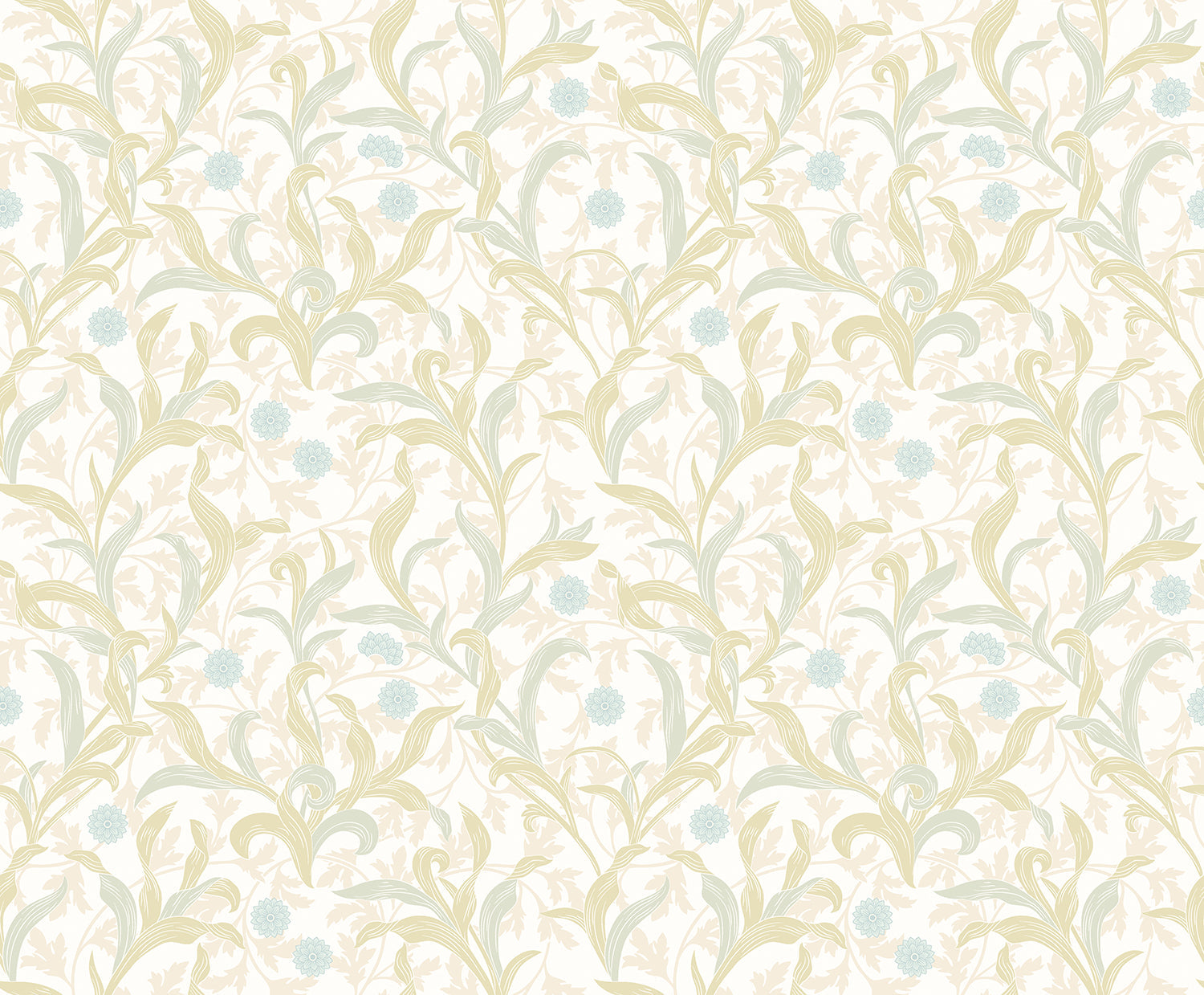 The Hoopla Walls Floral Trail Sky Apple wallpaper by Hoopla Walls embodies subtle elegance. Drawing from both vintage influences and modern artistry, its exquisite small-scale blooms lend a welcoming warmth and sophistication to your home. It is a superb choice for those looking to enhance kitchens, living rooms or bedrooms with a wallpaper that is as captivating as it is versatile.