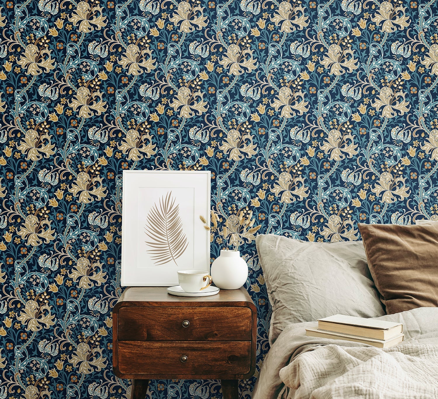 Drawing inspiration from John Dearle’s work for William Morris, the Lily Ogee Navy Blue wallpaper by Hoopla Walls delivers a bold and confident statement. Its deep navy backdrop provides the perfect canvas for the stylised botanical motifs, radiating timeless charm and effortless beauty throughout your interior. This decorative wallpaper will instantly inject character into bedrooms, kitchens, lounges, or any room in need of a touch of classic elegance.