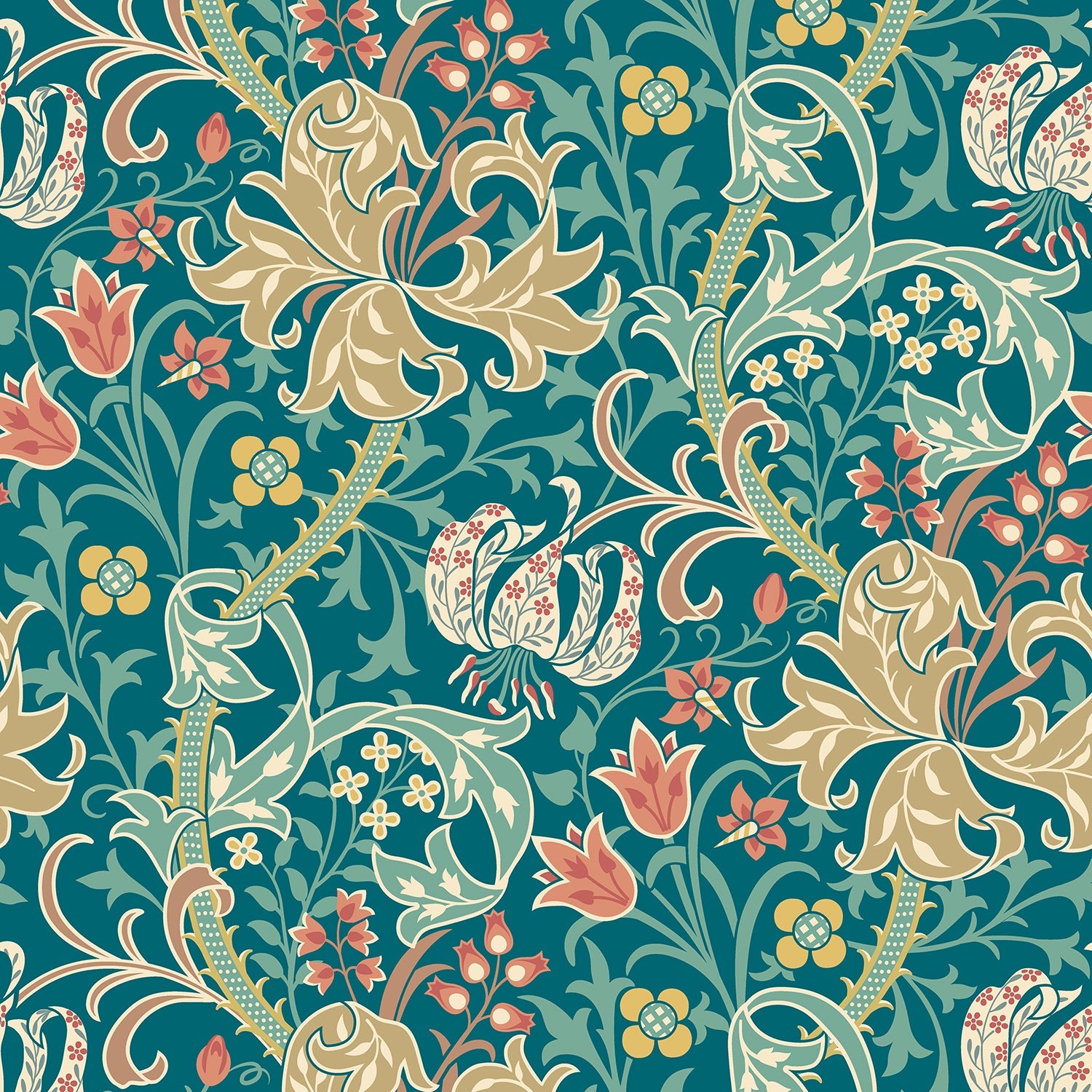 This wallpaper is inspired by John Dearle’s celebrated work for William Morris, capturing the spirit of classic British design with a modern, confident twist. The Lily Ogee Teal from Hoopla Walls effortlessly balances traditional artistry with contemporary sensibilities, making it an ideal choice for interiors aiming for both comfort and sophistication.