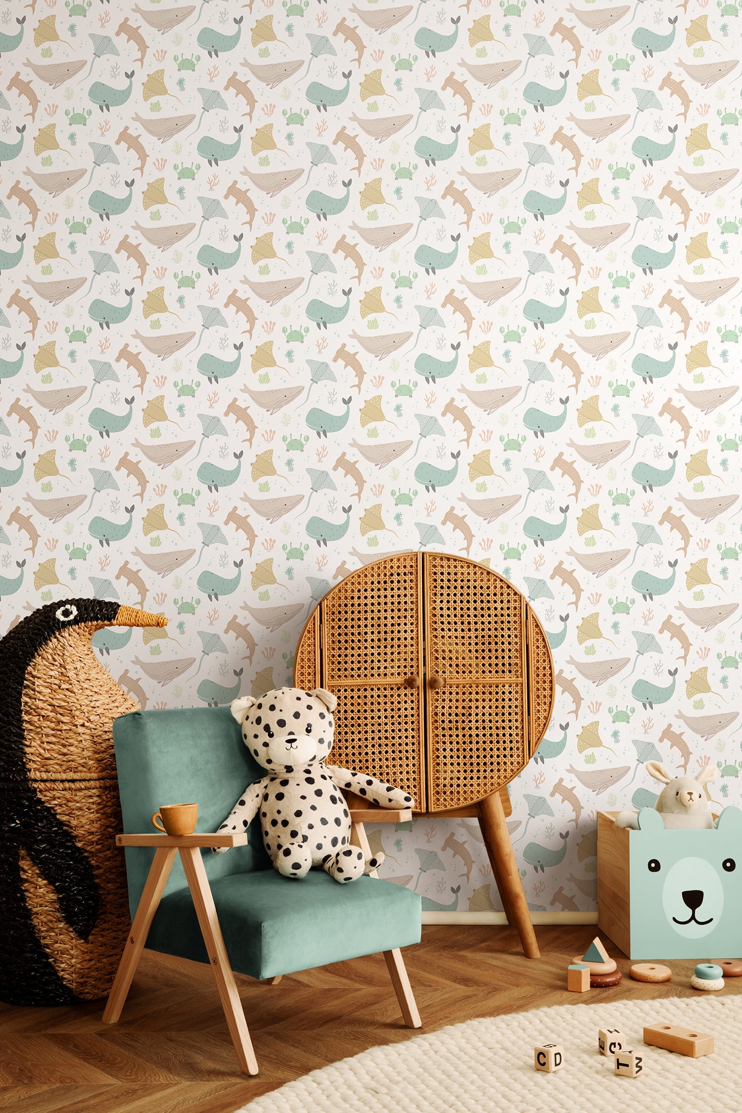 - Eye-catching underwater motif featuring whales and aquatic friends