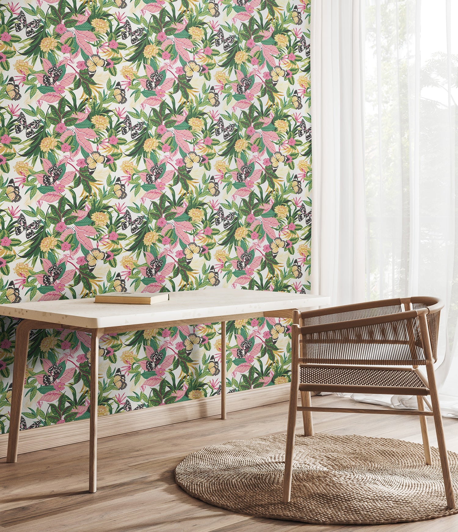 The Hoopla Walls Paradise Flamingo wallpaper is an extraordinary statement piece, perfectly suited to bring a decorative oasis into your living space. As described by Hoopla Walls themselves, this richly detailed wallpaper introduces a sense of vibrancy and life, transfiguring a plain wall into a work of art. Whether placed in a lounge, hallway, bedroom or kitchen, the stunning array of natural motifs and intricate detail ensures it will become a focal point of your décor.