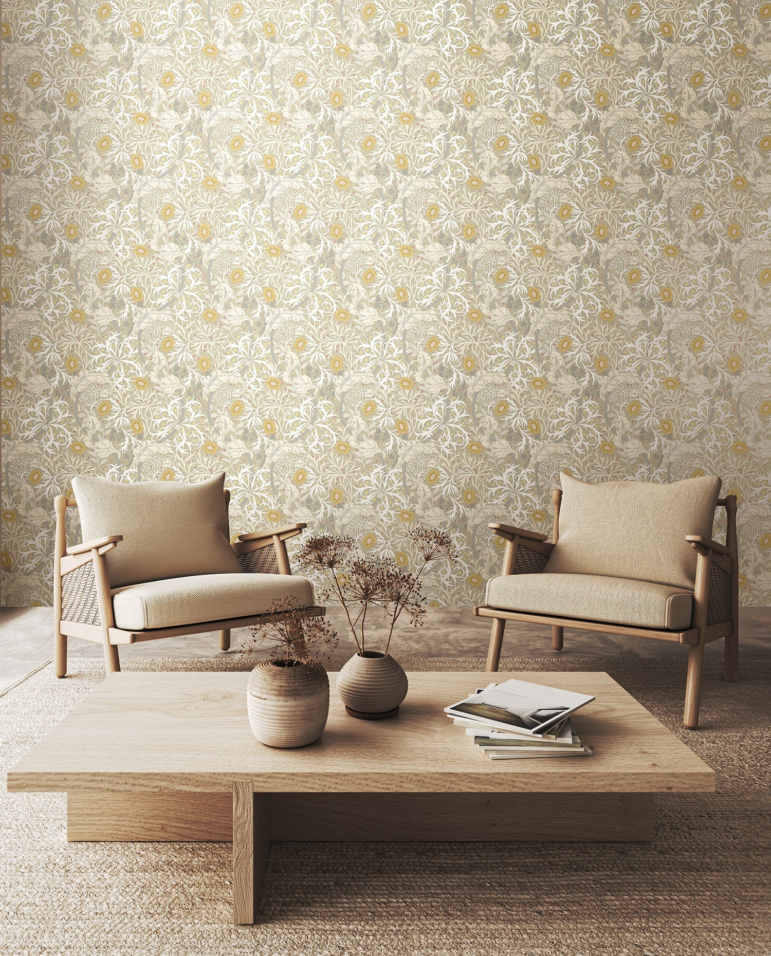 The Hoopla Walls Seaweed Garden Fossil Grey wallpaper by Hoopla Walls is inspired by the celebrated designs of John Dearle for William Morris, blending timeless British heritage with contemporary flair. This wallpaper is the perfect choice for those looking to introduce character and refinement to living rooms, bedrooms, kitchens, or lounges while staying true to classic influences.