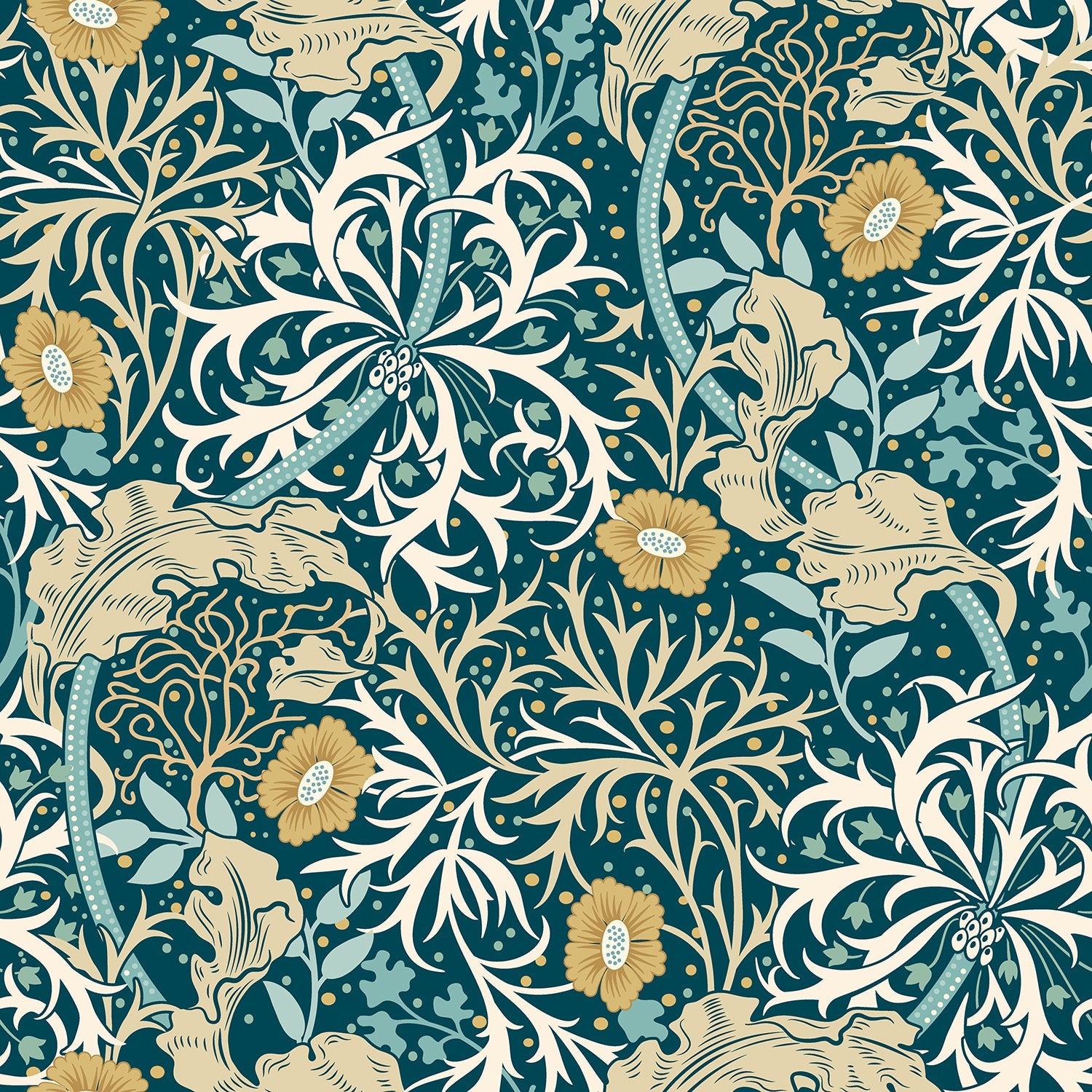 The Hoopla Walls Seaweed Garden Petrol Blue wallpaper is a magnificent interpretation, taking inspiration from John Dearle’s design for William Morris. With its rich petrol blue tones and detailed illustrated motifs, this wallpaper offers a contemporary twist on classic British heritage, making it the ideal choice for bedrooms, kitchens and lounges alike.