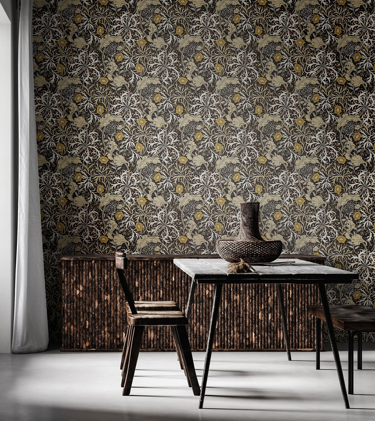 The Hoopla Walls Seaweed Garden Slate wallpaper is a stunning wall treatment, ideal for kitchens, lounges, and bedrooms seeking a unique touch of refined botanical charm. This exquisite interpretation draws inspiration from John Dearle’s iconic designs for William Morris, realised here in a contemporary yet timeless manner by Hoopla Walls. Its rich organic forms and subtle hues offer sophistication and allure as a striking feature wall or throughout an entire room.