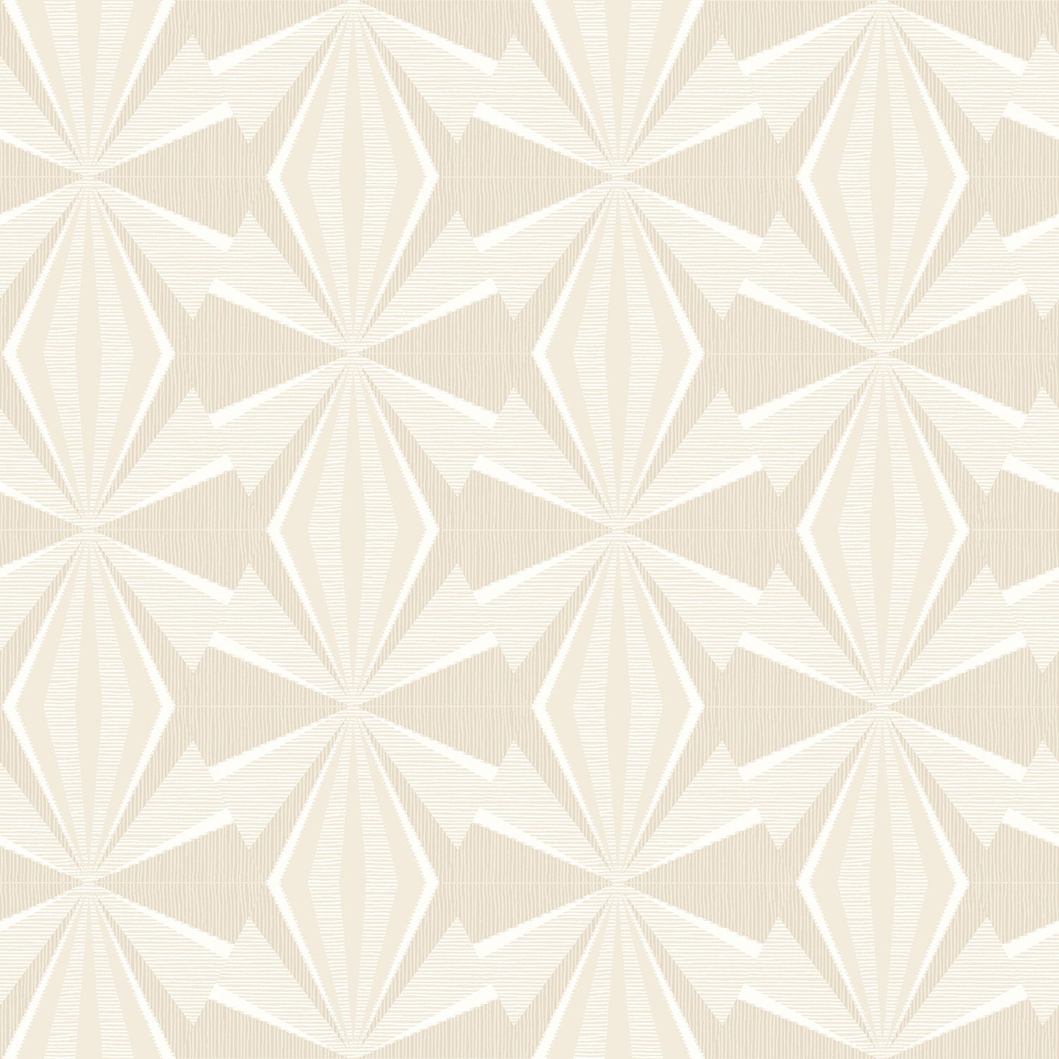 The visual appeal of the Sunray Diamond Beige wallpaper is immediately striking. The pattern features interlocking, repeating diamond shapes arranged across the surface, casting a gentle, mesmerising optical illusion. Radiant rays appear to filter through these diamond motifs, giving the impression of sunlight diffusing through intricate facets, making it a true design statement for any room. The harmonious blend of warm beige tones adds a naturally uplifting and calming ambiance to the space.