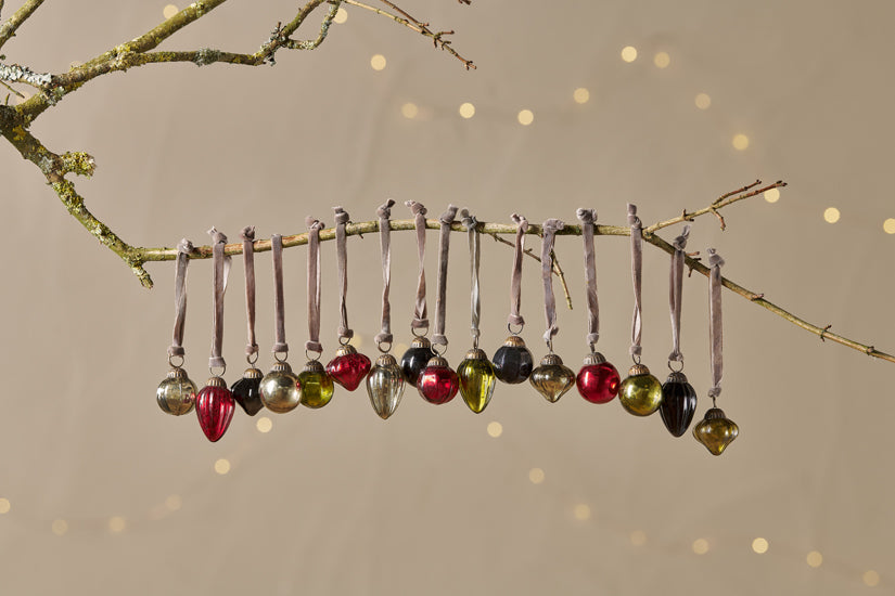 - Sixteen handcrafted glass baubles, each one unique for an eclectic yet cohesive look