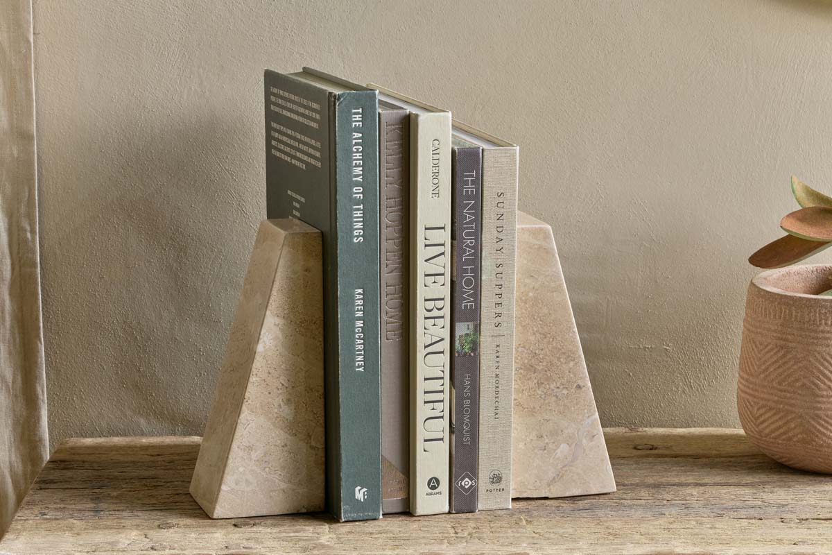 In the image, the Juda Marble Bookends present a refined, minimalist silhouette, enhanced by the exquisite grey marble’s natural veining. Their smooth, polished surfaces catch the light beautifully, emphasising the unique marbled textures and soft, cool hues. Set upon a bookshelf or desk, they offer a striking contrast to your collection of books, effortlessly elevating the ambience of any home or office space.