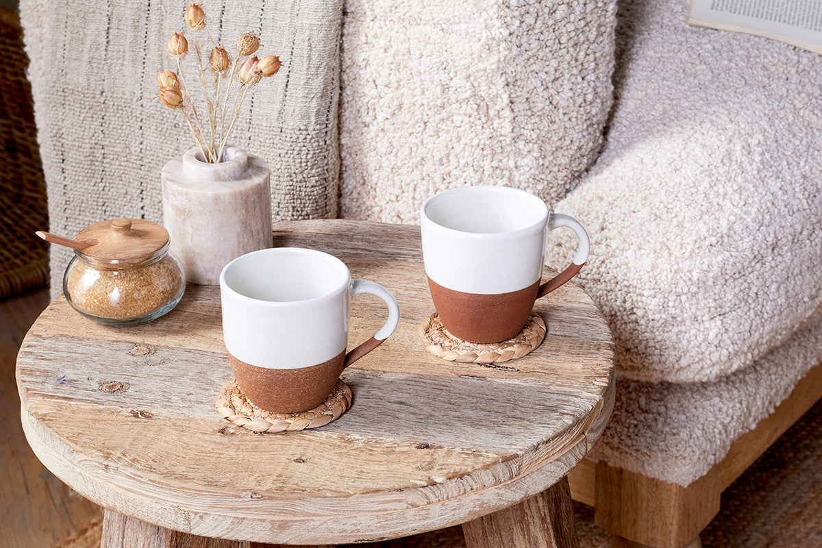 The Nkuku Mali Large Mug White (Set Of 2) embodies the heart of Mali pottery, designed and handmade by skilled artisans in southern India. Carefully crafted in small batches as part of a fair-trade initiative, this collection supports local communities and empowers women in the workplace. The process, refined over time and conducted in small kilns with open fires, ensures each mug carries with it a sense of authenticity and social responsibility.