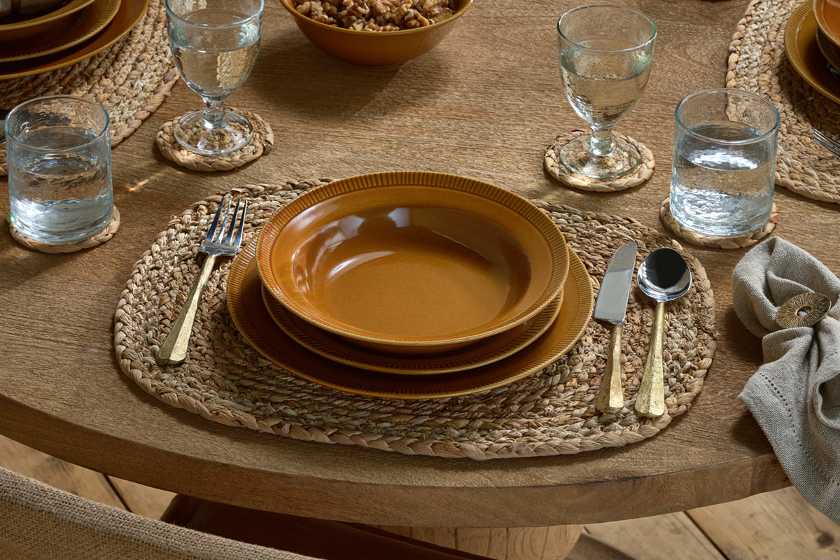 The Nkuku brand is renowned for its thoughtfully crafted tableware collections, and the Nkuku Nuwara Pasta Bowl Mustard truly exemplifies this commitment to high quality and distinctive design. Known for working with talented artisans, Nkuku brings a touch of refined elegance to every meal, making their pieces sought-after additions to any kitchen or dining experience.