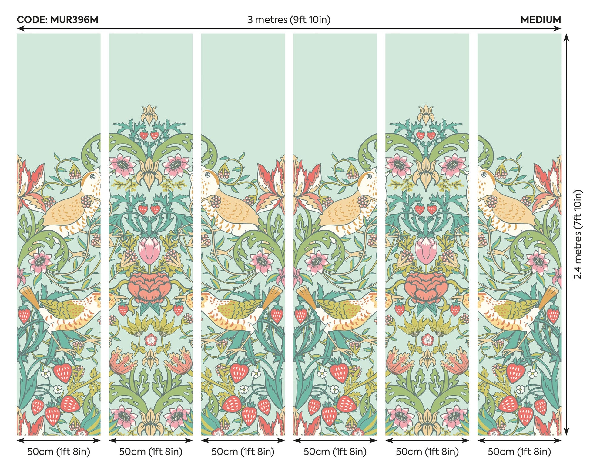 The Origin Murals Birds Fruit And Foliage Duck Egg by Origin Murals brings a sense of refined elegance to both modern and traditional interiors. Inspired by the iconic 1883 William Morris design, this wallpaper is perfect for creating a feature wall or adding artistic flair to living areas, bedrooms, or creative spaces. Its repeating design ensures visual continuity, making it suitable for expansive surfaces or accent panels.