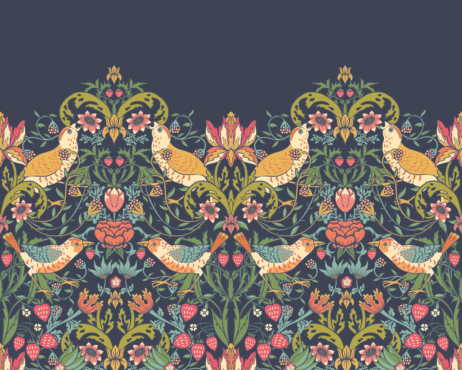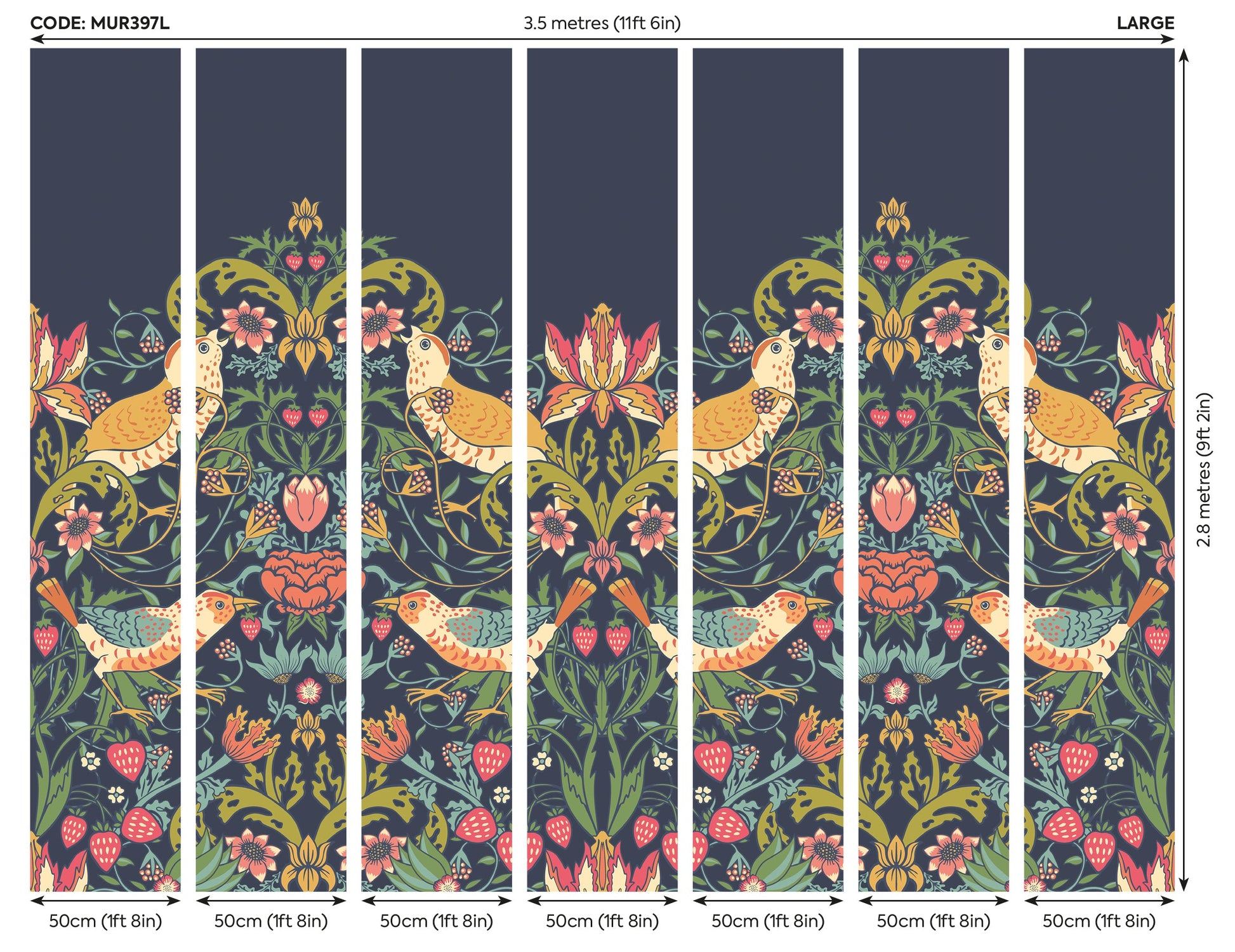 The Origin Murals Birds Fruit And Foliage Navy And Coral wallpaper is a stunning tribute to the celebrated William Morris patterns from 1883. This design perfectly blends nostalgia with contemporary craftsmanship, creating a bold statement in any space yearning for elegance and character. Its lush composition and masterful details make it a breathtaking choice for those seeking both beauty and story in their wall decor.