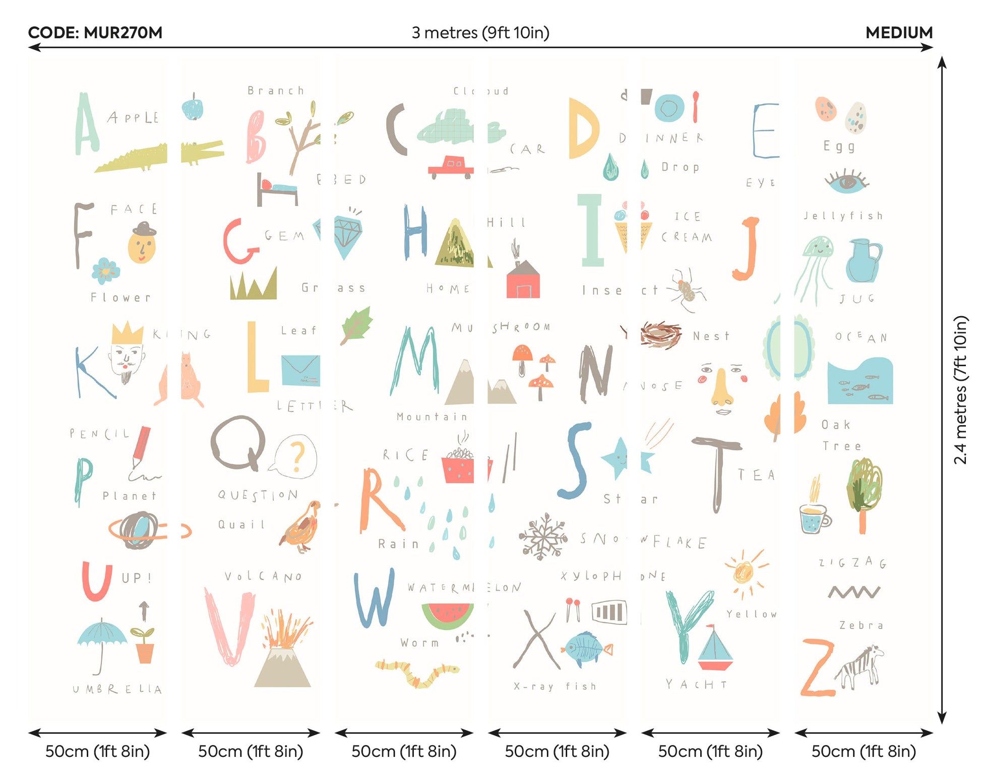 This children’s alphabet wallpaper mural by Origin Murals is ideal for parents and caregivers seeking to inspire a love of learning whilst enhancing room decor. Transform any wall into an enchanting, educational feature that both children and adults will adore.