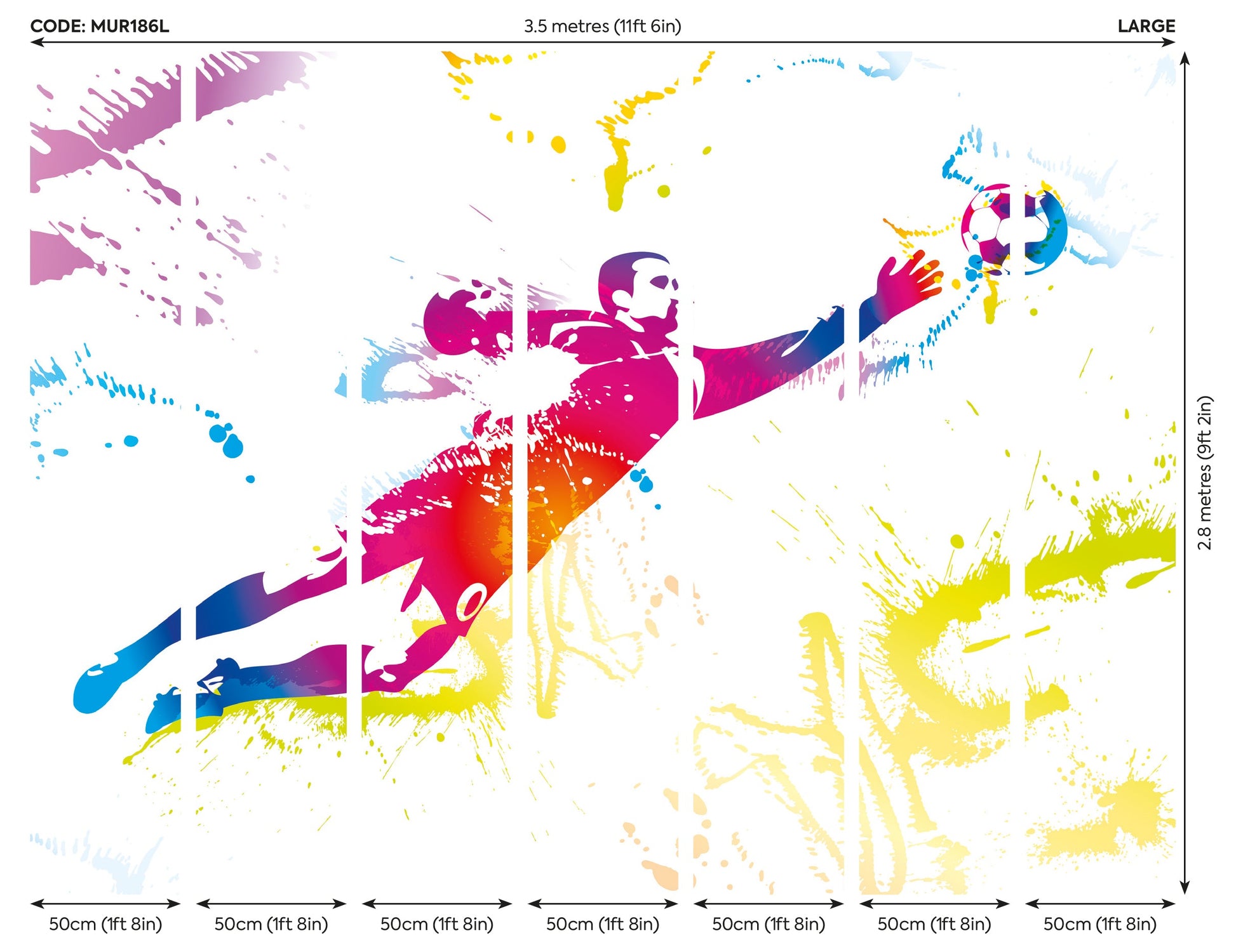 - Striking wall mural featuring a vibrant football goalkeeper design