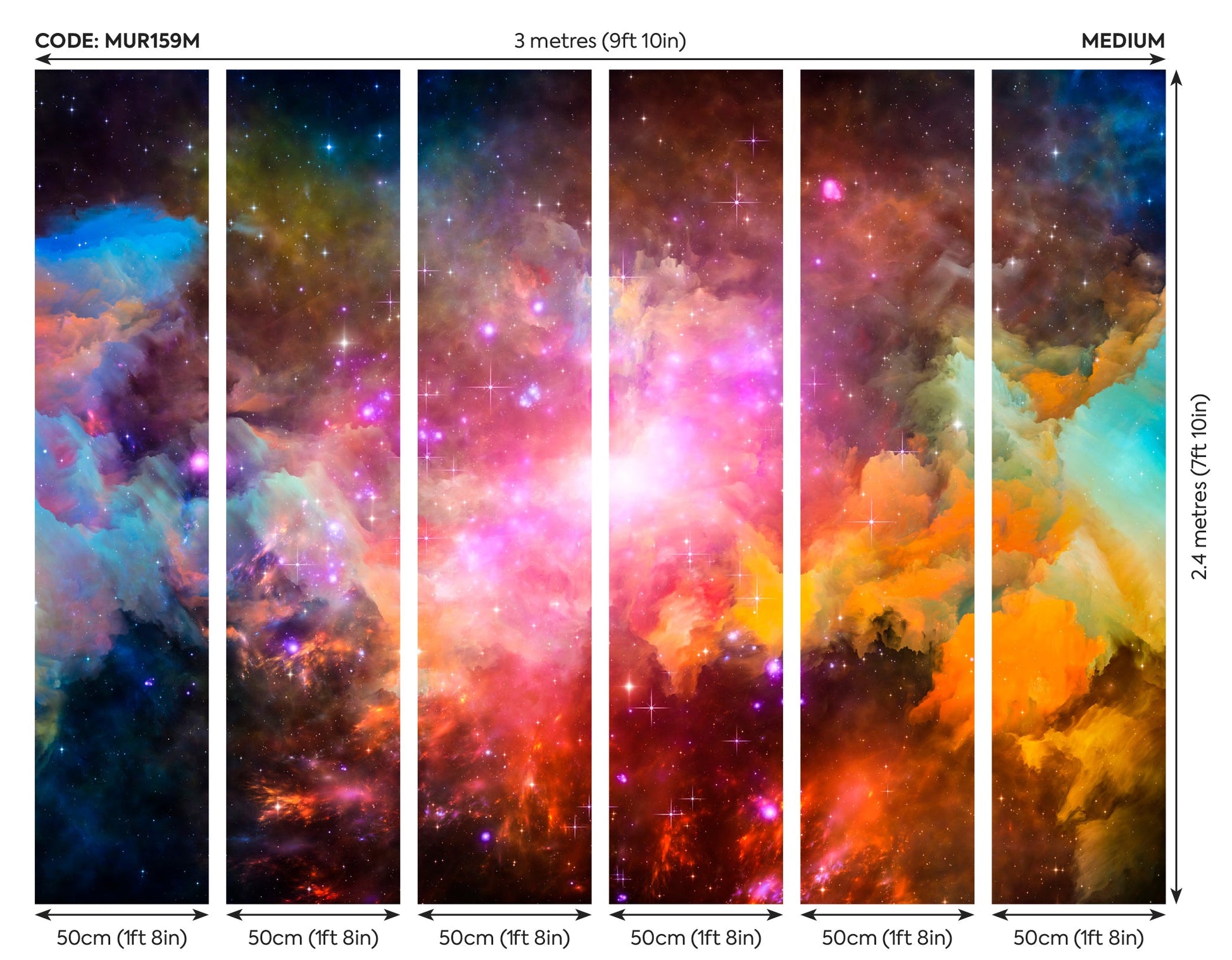 The Origin Murals Galaxy Stars Multi by Origin Murals is an exquisite wallpaper that encapsulates the drama and visual intrigue of the cosmos in one mesmerising design. Drawing upon current interior trends, this mural is ideal for those looking to bring both vibrancy and sophistication to their surroundings. The mural is set to enchant, whether used as a signature feature wall or as part of a wider decorative scheme.