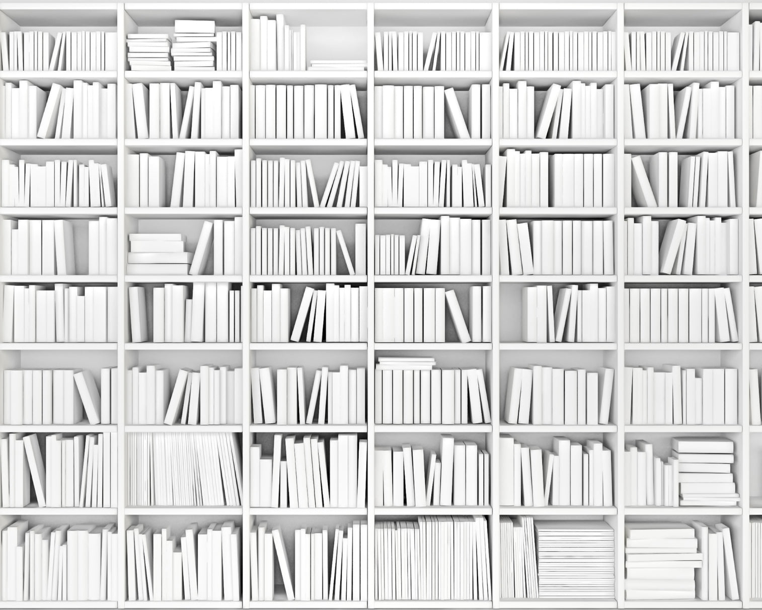 The image presents a striking bookshelf, its meticulously arranged spines lending a sense of cultivated order and timeless allure. Crisp white tones and gentle shadows enhance the sense of depth, while clean architectural lines provide an inviting, modern contrast to the classic library scene. This mural leads the eye upwards, creating the illusion of enhanced height and space within your room.