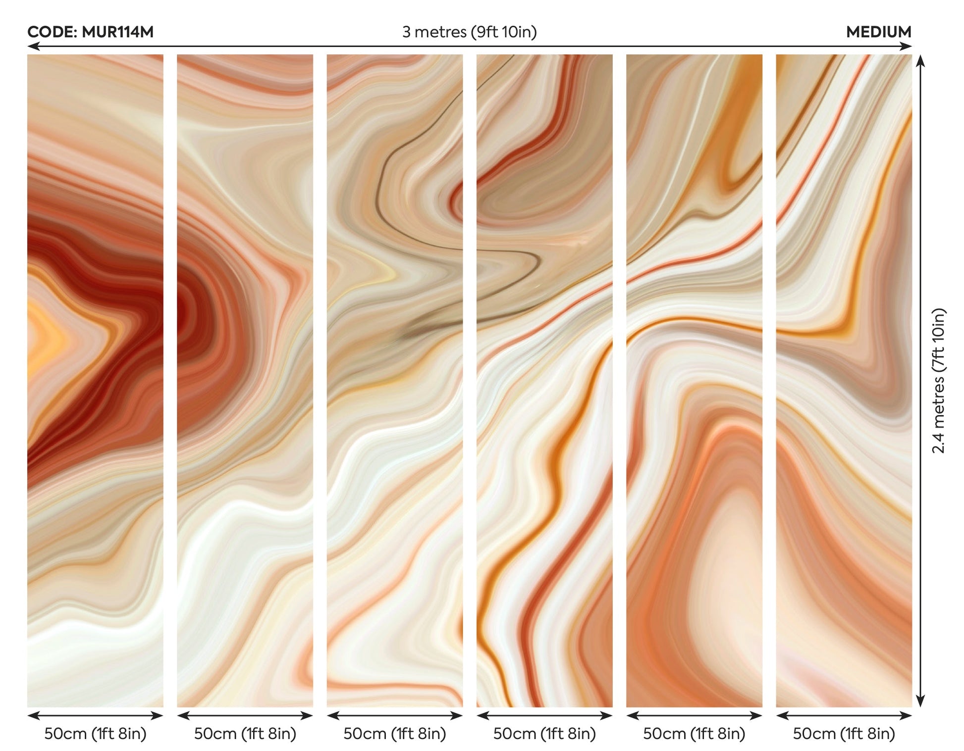 The Origin Murals Marbled Ink Cinnamon wallpaper offers a contemporary approach to wall decor, ideal for those seeking a unique and sophisticated touch. According to Origin Murals' esteemed collection, this mural is designed to introduce an abstract ambience with finely-layered colours that echo the beauty of fluid art. Every detail in this wallpaper has been thoughtfully composed to transform interiors with a feeling of calm sophistication and modern artistry.