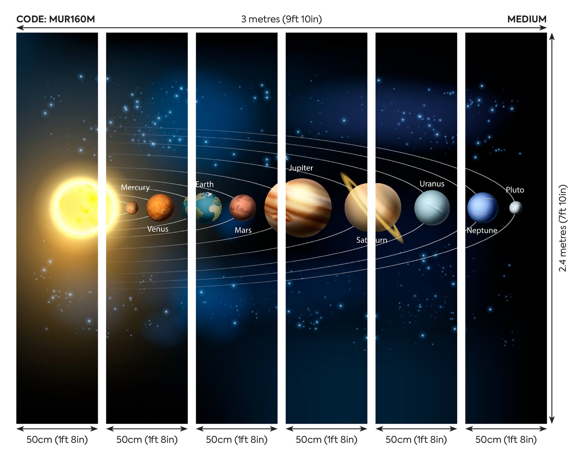 Let the Origin Murals Planets Multi wallpaper transform your living space, encouraging imagination and learning through artful depiction of the cosmos. Perfect for adding a unique touch to your décor, it offers an engaging way to make science and astronomy part of everyday life.
